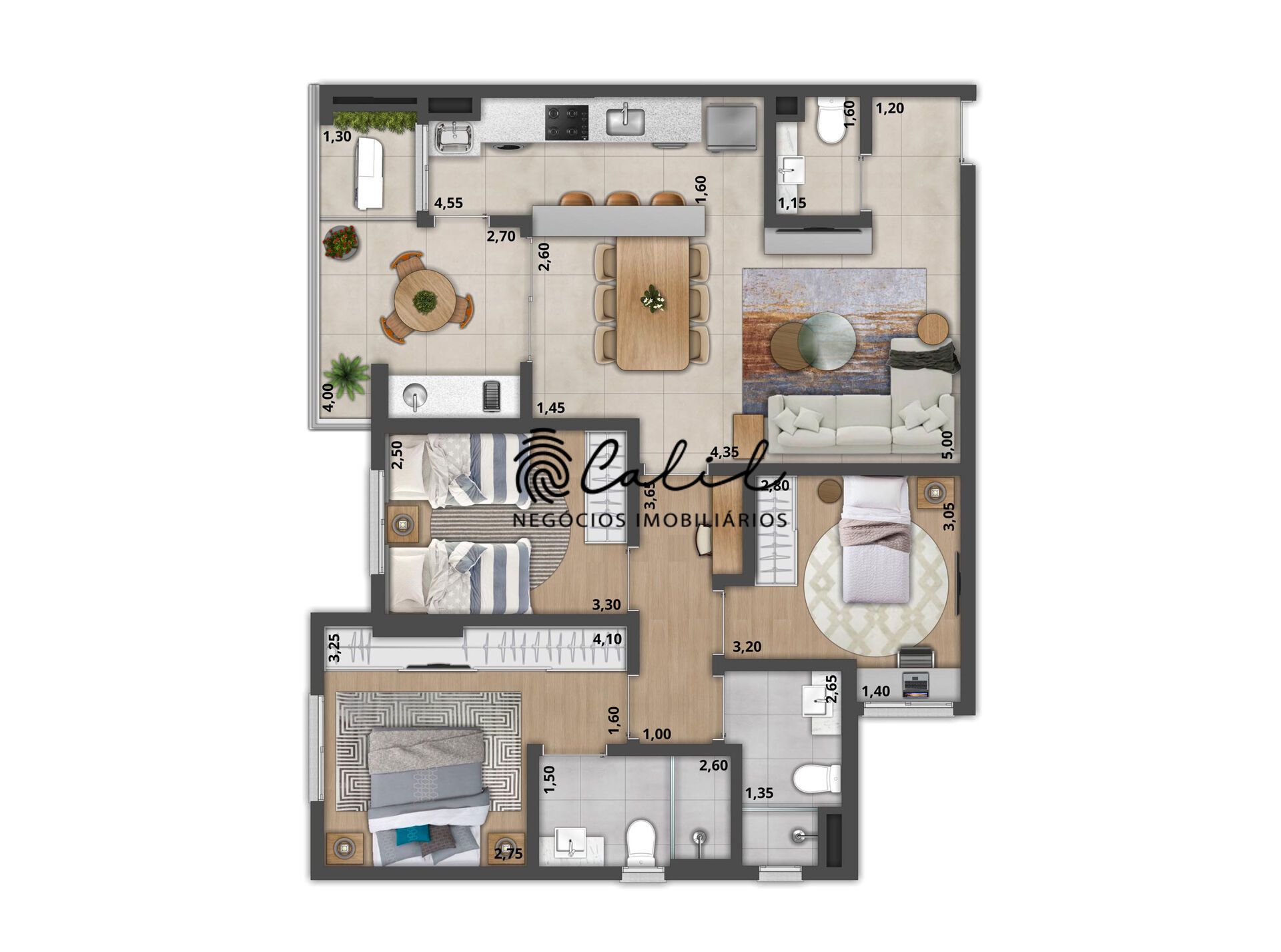 - Planta com excelente distribuição e integração entre os ambientes