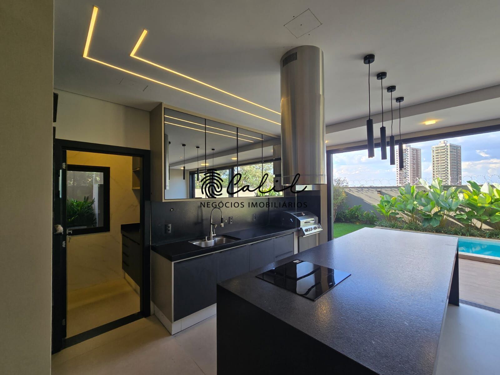 Diferenciais: Sala ampla, escritório, cozinha integrada, piscina aquecida com hidro e iluminação, completa em armários, cozinha auxiliar, vestiário