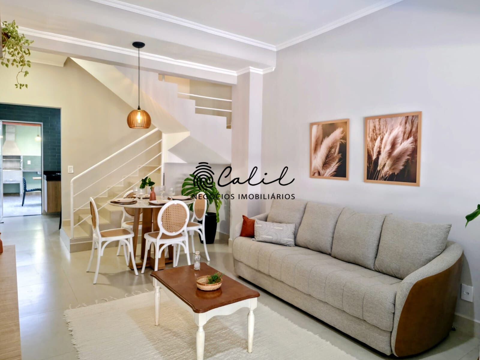 Sala para dois ambientes totalmente mobiliada e decorada